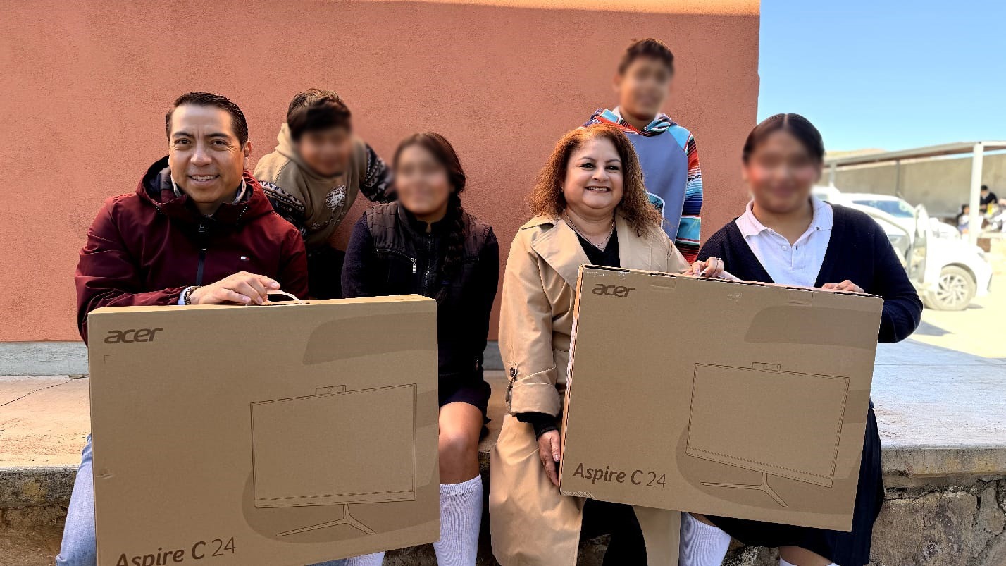 A fin de facilitar el uso de las herramientas tecnológicas y fortalecer su progreso académico, 110 estudiantes de la Escuela Telesecundaria “Nicolás Bravo”, de la comunidad San Ramón, en Guadalupe, recibieron equipos de cómputo, a través del Programa 2×1.
