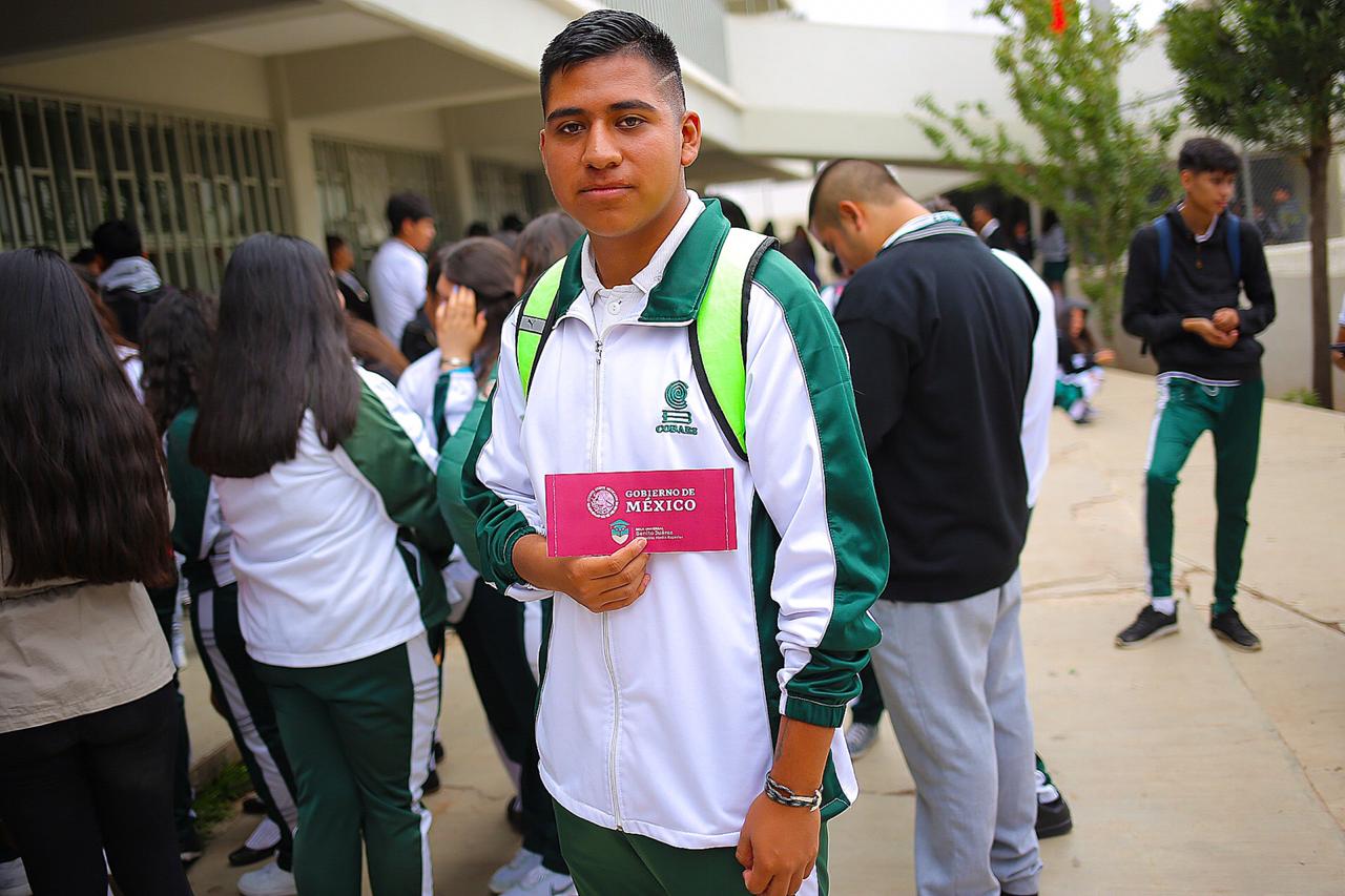 Con el objetivo de garantizar la permanencia en las aulas de los estudiantes de nivel medio superior, el Gobierno de México entrega becas para el Bienestar Benito Juárez a 9 mil 263 alumnos de los 29 planteles del Colegio de Bachilleres del Estado de Zacatecas (Cobaez).