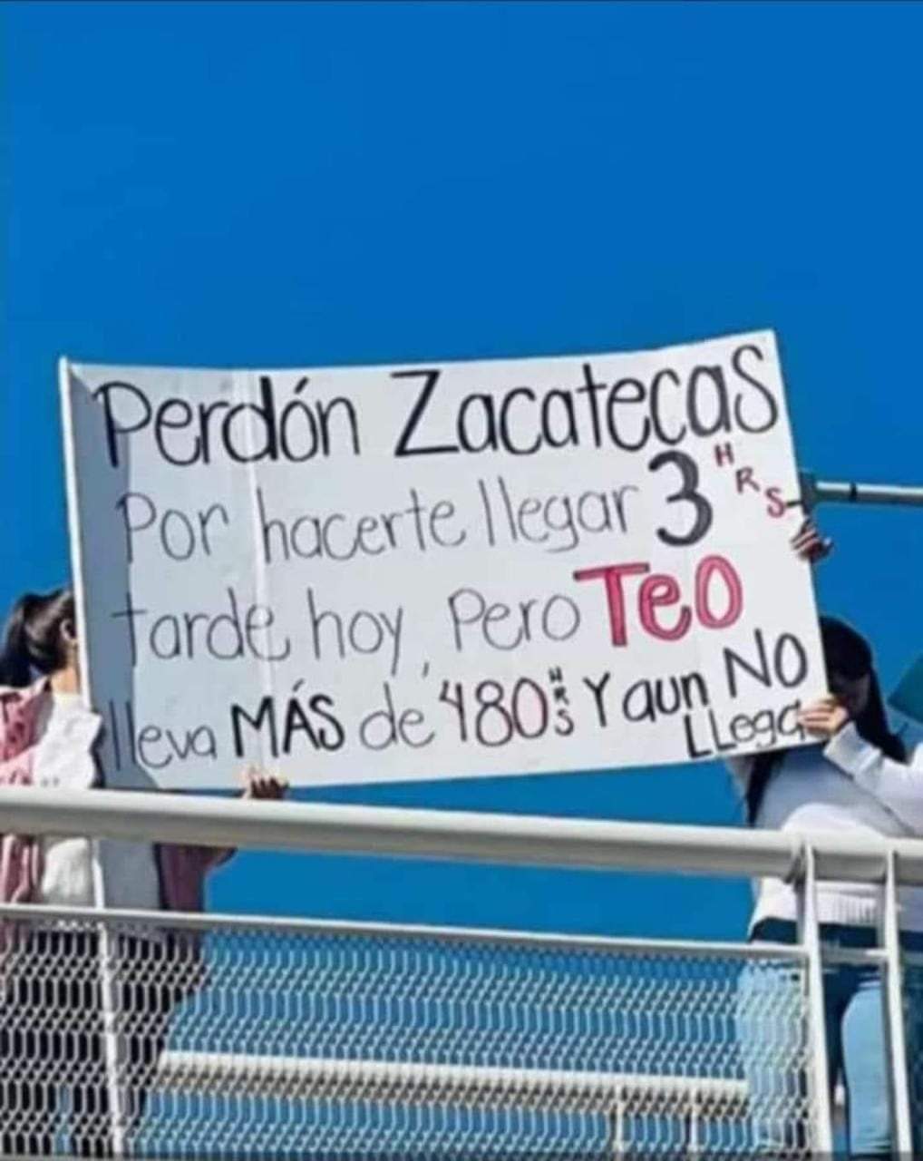 Con el mensaje de “Perdón Zacatecas por hacerte llegar tres horas tarde hoy, pero Teo lleva más de 480 horas y aún no llega”, iniciaban con los bloqueos