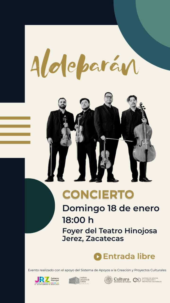 El Instituto Jerezano de Cultura invita al público a disfrutar del concierto de Aldebarán, que se realizará el domingo 18 de enero a las 6:00 p.m. en el Foyer del Teatro Hinojosa.