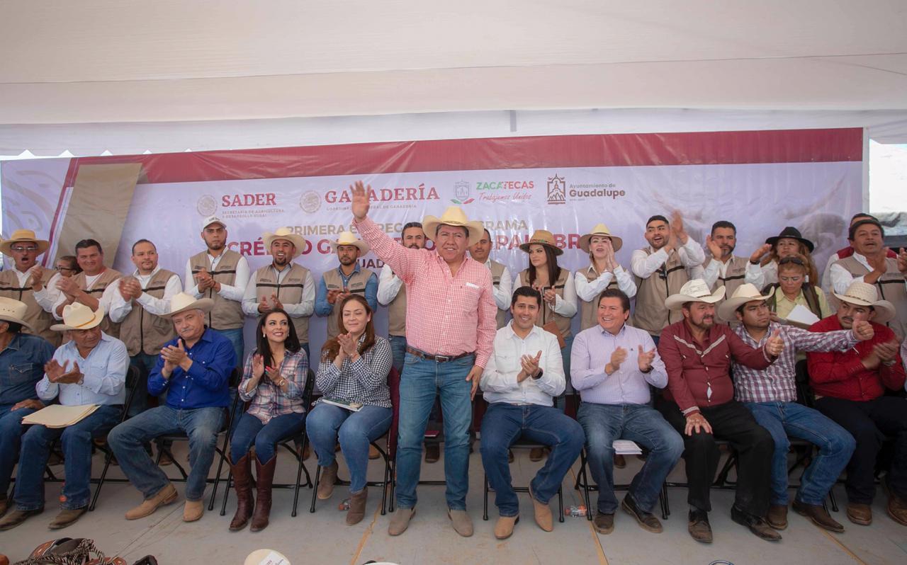 Tal como lo había hecho antes en Pinos, David Monreal Ávila, coordinador nacional de Ganadería de la Secretaría de Agricultura y Desarrollo Rural (Sader), otorgó en Guadalupe los primeros apoyos del Crédito Ganadero a la Palabra.