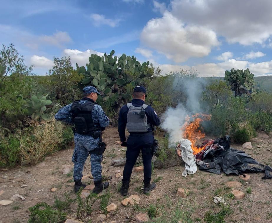 En el municipio de Jerez, en una acción coordinada, autoridades federales, la Secretaría de Seguridad Pública y la Policía Municipal ubicaron y destruyeron un campamento que era utilizado por un grupo delincuencial, acciones de corporaciones policiales, a través de las cuales se busca reforzar la seguridad.