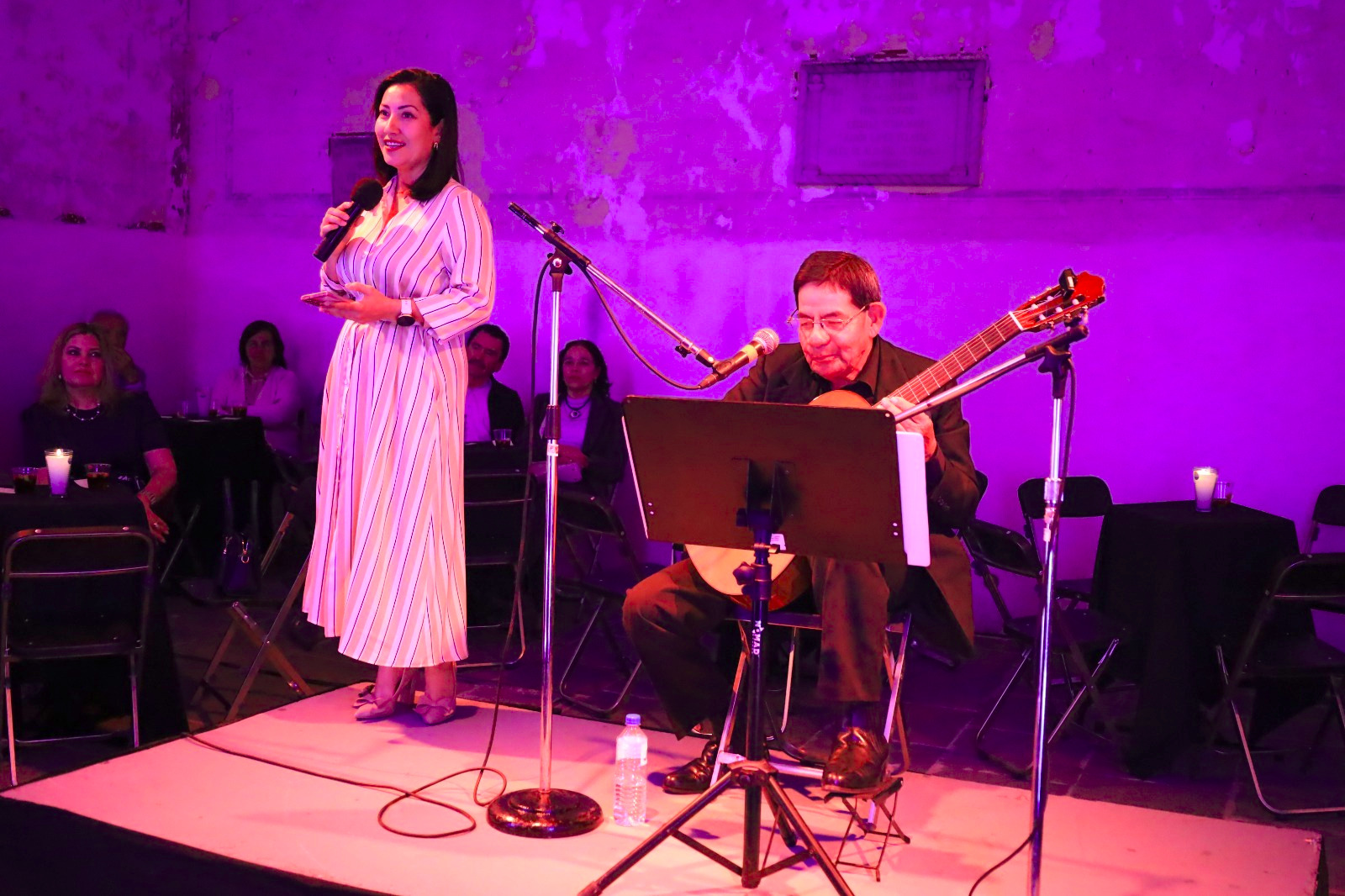 La velada contó con la participación musical de Jaime Carrillo, Imelda Luna y estudiantes de la Escuela de Música Candelario Huízar, quienes interpretaron piezas acordes al espíritu bohemio de la noche, evocando emociones a través de la música y la poesía.